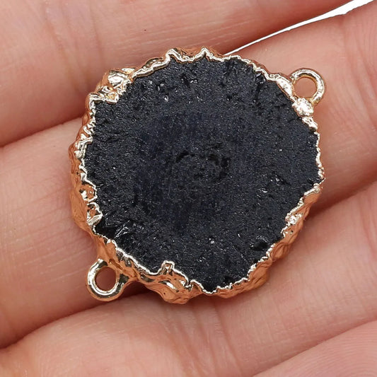 1PC Natural Gem Stone Charms Connector Agates Druzy Quartz Pendant